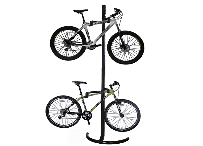 Store up to 2 bikes safely and conveniently. The bike stand's unique design allows the bikes to sit close to the wall freeing up valuable garage space.