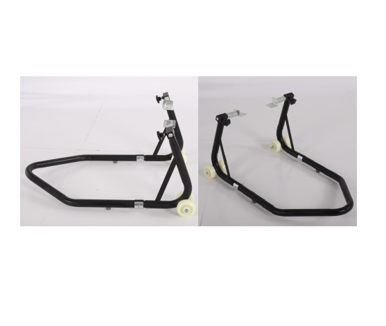 Fully adjustable padded swingarm rests Robust steel tube construction 4 wheels for maximum stability Will not scratch swing arm
