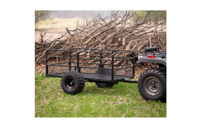 Hitch to UTV/ATV with hitch adapter (not included) or to lawn tractor/mower using vertical hitch pin system (not included)