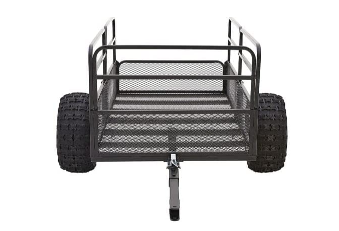 Holds up to 20.5 cubic feet of cargo; Rubber, all-terrain 18-9.5-8 tires for smooth handling and easy towing