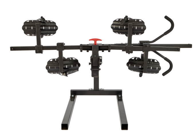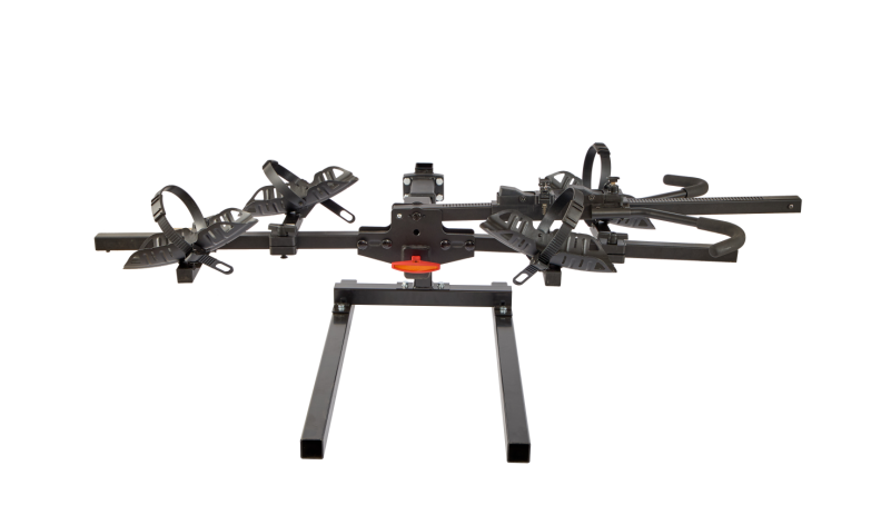 Tilt the rack down for rear vehicle access or tilt it up when not in use. Locking ratchet hooks on the arm keep your bikes safe and secure. The adjustable steel wheel tray: keep your wheels secured on the rack