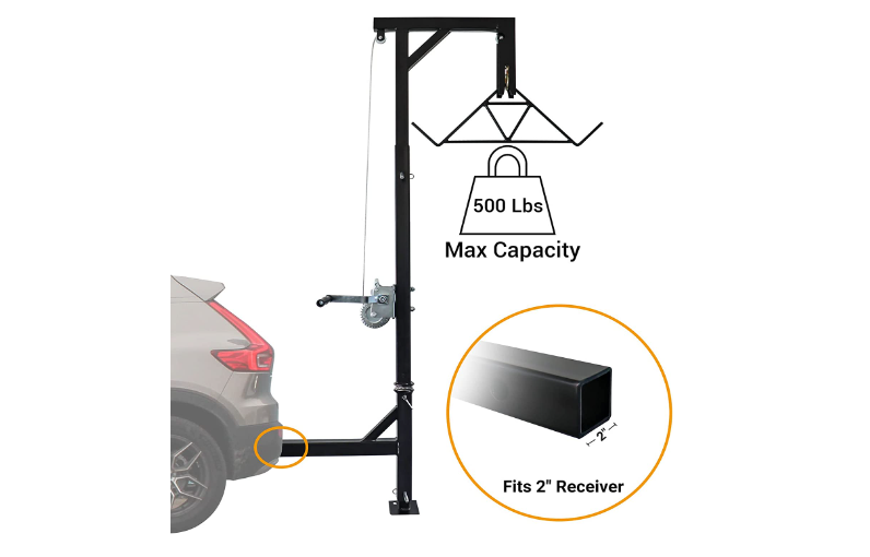 Truck Hitch Game Hoist & Gambrel - 500lbs with 360 Degree Swivel - Complete Hoist Kit (Included Winch/Gambrel)