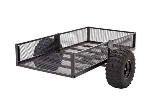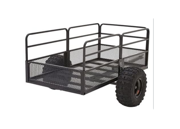 Holds up to 20.5 cubic feet of cargo; Rubber, all-terrain 18-9.5-8 tires for smooth handling and easy towing